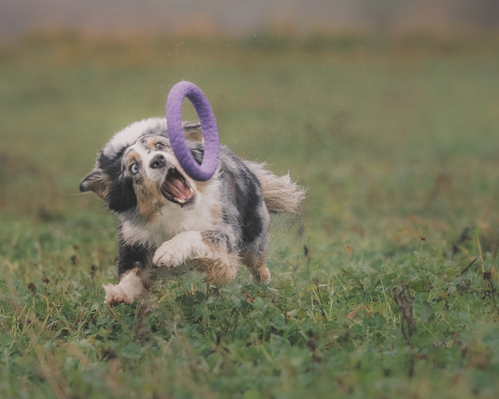 Podczas tej sesji były portrety, były również interakcje między zwierzęciem i człowiekiem. Zabraknąć oczywiście nie mogło dynamiki i aktywności fizycznej. Mafia to piesek pełen energii. Zabawa była nieunikniona. Postanowiłem wykorzystać niezwykłą sprawność psinki i zrobiłem z niej fotograficzny użytek.